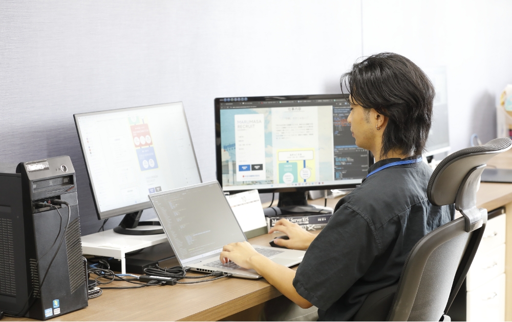 クライアントからのヒアリングを基に、ホームページ、ポータルサイトなどのWEBデザインからコーディングまでを担当。WEB公開後は修正対応(保守対応)も行なっています。